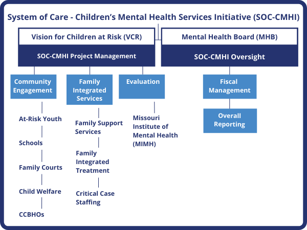 Vision for Children at Risk works to provide overall project management, infrastructure services, and family support services to SOC-STL.