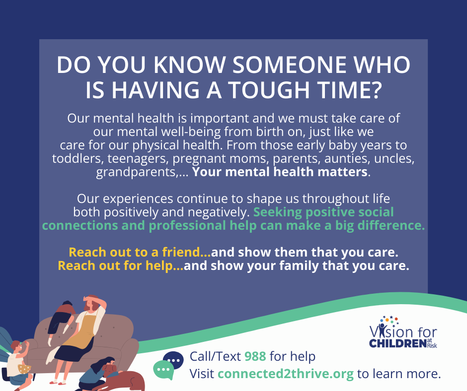 We invite you to help us spread the important message that Mental Health Matters and that no negative stigma should stop us from being our best selves for our families. By connecting to our families, each other, and to supports — we can make a difference.