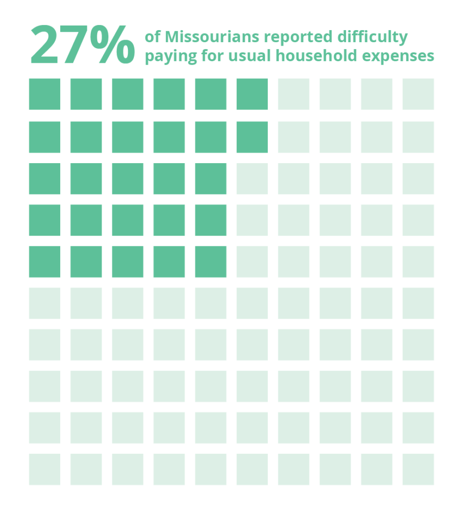 According to the week 23 data (Jan 20 – Feb 1, 2021) of the Household Pulse Survey, 27 percent of Missourians reported difficulty paying for usual household expenses. This includes such basic needs as food, rent, and utility expenses.