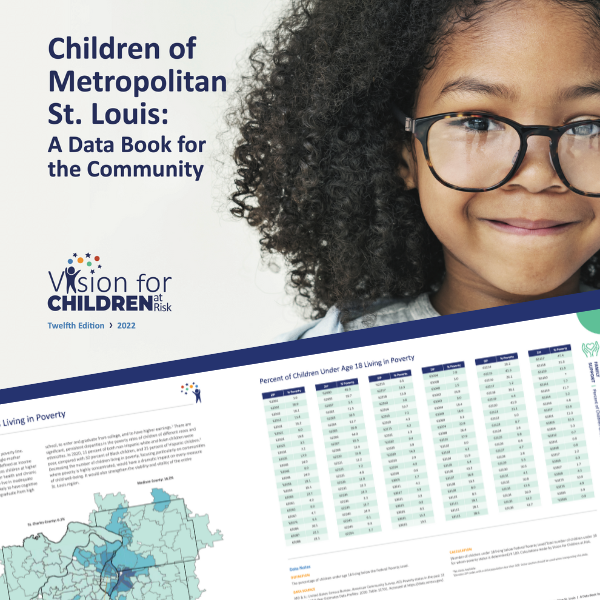 The Children of Metropolitan St. Louis Data Book is part of the foundation of VCR. We trace our roots back to 1991 when Project Respond produced A Report to the Community: Addressing the Needs of St. Louis Children at Risk. The report illustrated the stark disparities facing children and families and the systemic issue that the programs for children and families were not reaching those most at risk. Since 1991, Vision for Children at Risk…
